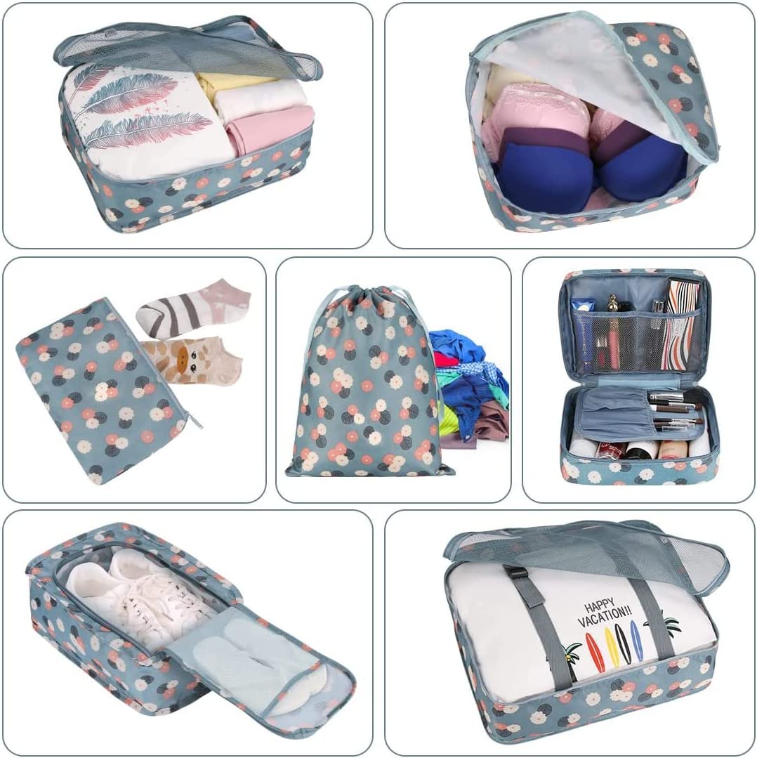 - More Sophisticated Makeup Bag & Shoe Bag: Unlike other suppliers, our packing bag set includes a new stylish makeup bucket bag, built-in mesh pockets, storage your cosmetic orderly. A new stylish shoes bag, convenient to store and keep your shoes in your travel.