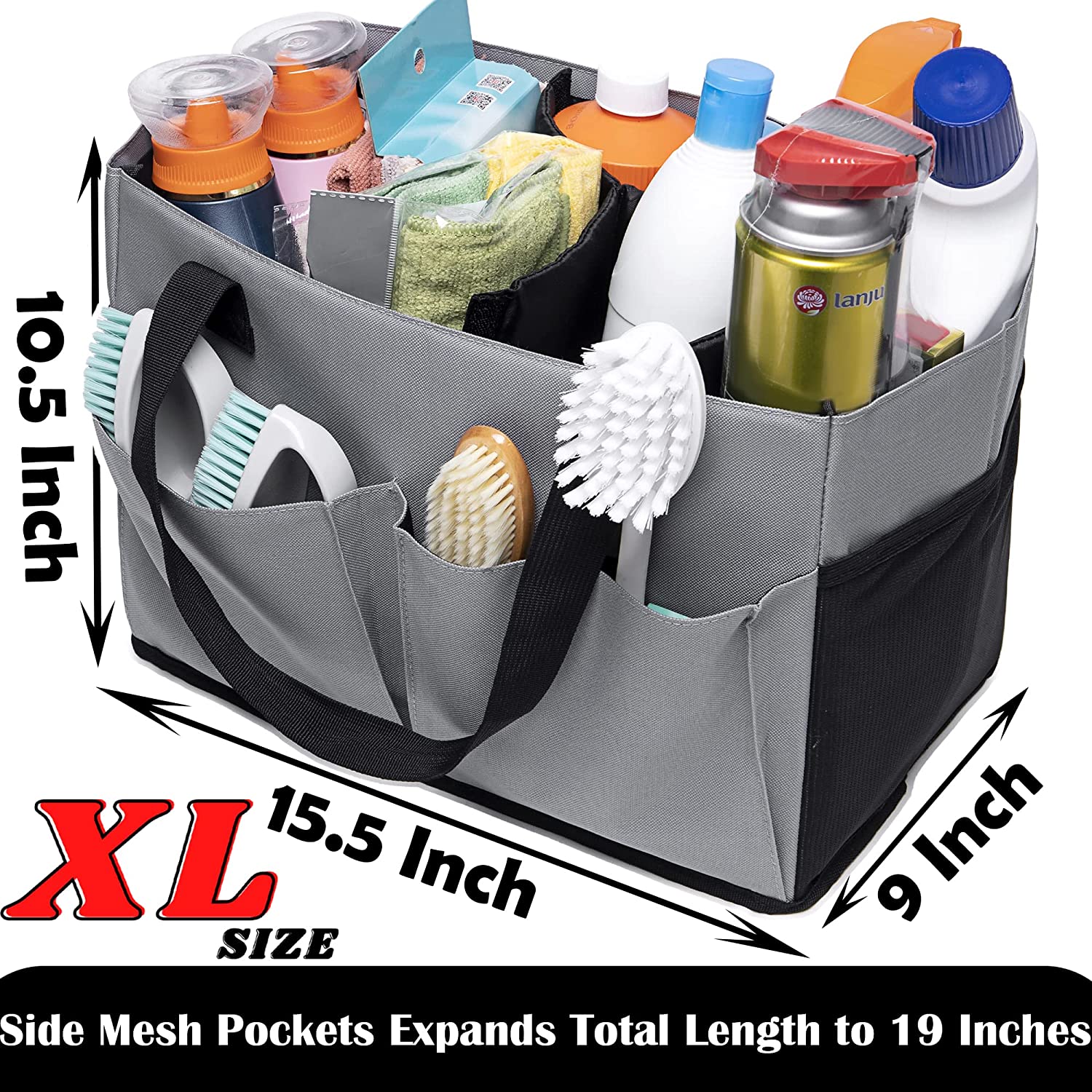 - CLEANING ON-THE-GO: Unlike standard caddies, this multi-function cleaning caddy from Deraby has an Extra-large size with side mesh pockets. Its 15.5″L X 9″W X 10.5″H frame can expand to a total length of 19 inches. The various storage compartments in the bag allow you to store all of the cleaning supplies. The flexibility offered by this caddy also makes it the perfect bag for storing for your smartphone, iPods, Digital Cameras, keys, wallet, credit cards & much more.